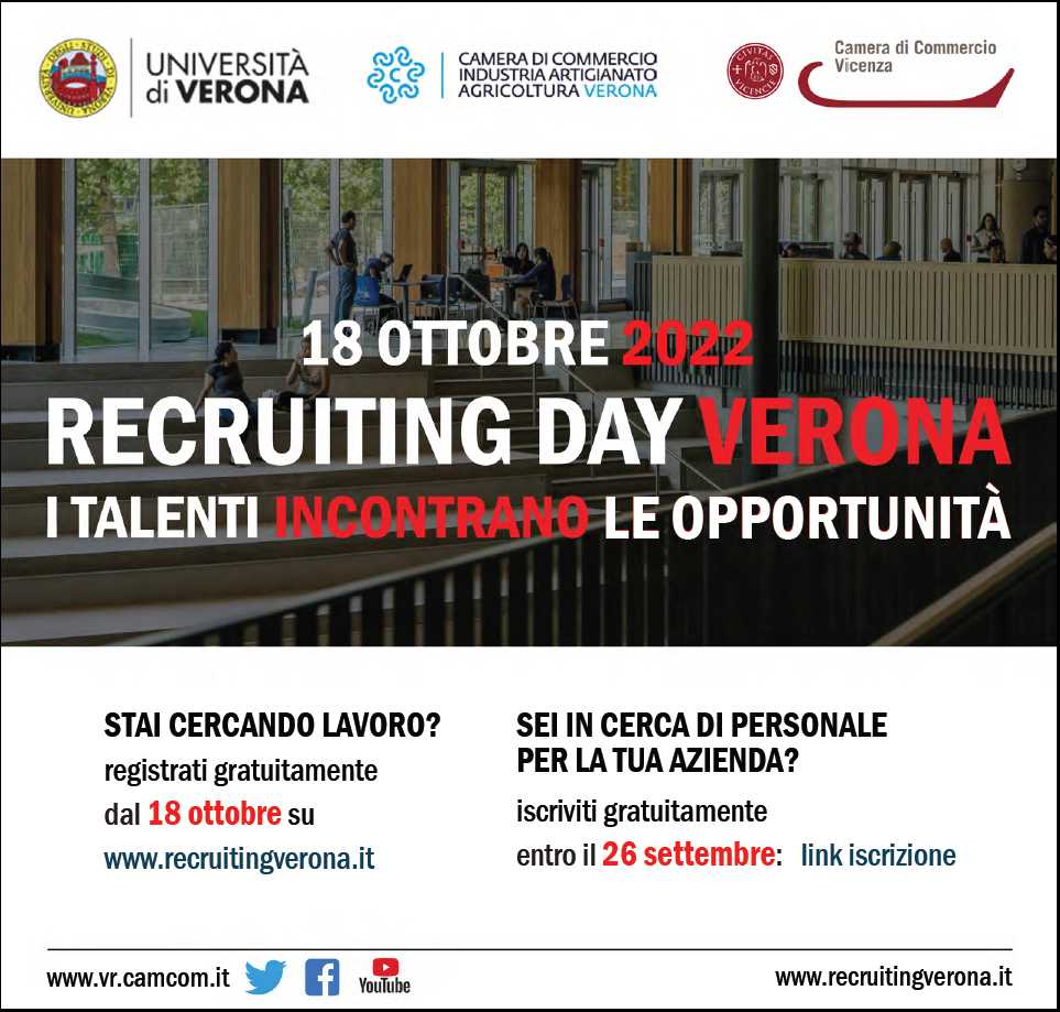 Recruiting Day Verona 2022 dal 18 ottobre al via le candidature , Participation is free and will take place online on the www.recruitingverona.it platform. Andrea ceschi (università di verona).